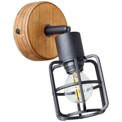 Beschreibung Brilliant Gwen Wandleuchte Metall Holz Schwarz | Geeignet für 1x E14