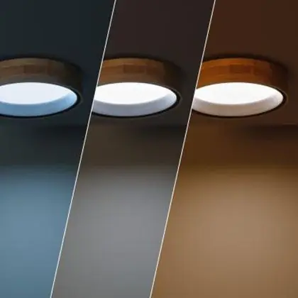 Beschreibung Deckenleuchte Rund Holz Metall Schwarz 15W 1000lm - 830-840-860 CCT