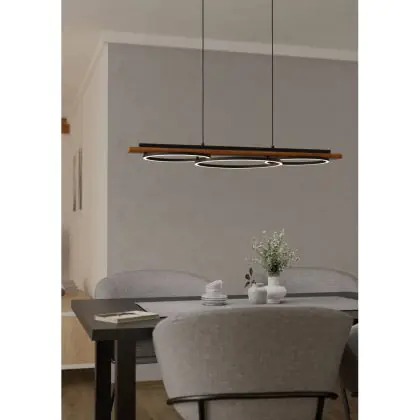 Die Eglo Pendelleuchte Boyal Holz Schwarz, Rostig 40.5W 3600lm - 830 Warmweiß | Dimmbar sorgt für eine angenehme Ausleuchtung und punktet durch modernes Design. Diese Leuchte ist speziell zur Montage an der Decke vorgesehen.