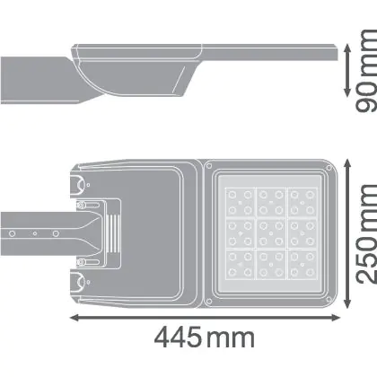 Beschreibung Ledvance LED-Straßenbeleuchtung Flex klein RV25ST Grau 13W 1650lm 25x145D - 727 Extra Warmweiß | IP66 – Asymmetrisch