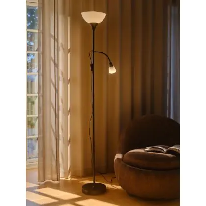 Die Stehlampe eignet sich hervorragend für den Einsatz in Wohn- und Schlafzimmern, als Leselicht neben dem Sofa oder Sessel sowie in Arbeitszimmern und Büros. Auch in Hotellobbys, Empfangsbereichen oder Wartezonen sorgt sie für eine angenehme Atmosphäre. Durch die Auswahl des passenden Leuchtmittels können Sie die Lampe ganz nach Ihren individuellen Anforderungen nutzen – ob warmes, gemütliches Licht oder kühle Beleuchtung für konzentriertes Arbeiten.