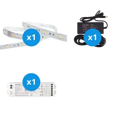 Der große Vorteil dieses Komplettsets ist, dass Sie alles Zubehör haben, das Sie benötigen, um die besten Lichtakzente für Ihr Zuhause oder Ihre Geschäftsräume zu setzen. Sie müssen nicht nach dem richtigen Zubehör suchen, sondern nur alle Elemente miteinander verbinden. Anschließend stecken Sie den Stecker in eine normale Steckdose in Ihrem Haus. Alles dazu erfahren Sie in unserem Installationsblog. Dieses Set enthält: