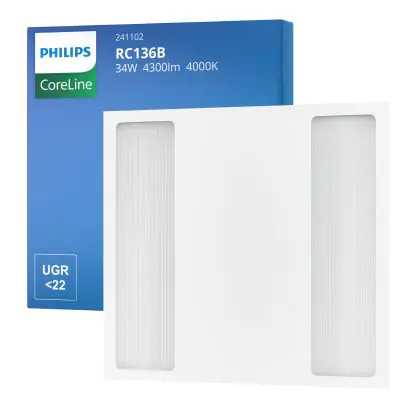 Bei dem Produkt “Philips LED Panel CoreLine RC136B 25/34W 3100-4300lm - 840 Kaltweiß | 60x60cm - UGR ” handelt es sich um eine effiziente Rasterleuchte der Marke Philips, welche Licht in der Farbtemperatur 4000K - Kaltweiß ausstrahlt und durch eine lange Lebensdauer punktet.