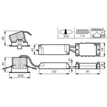 Beschreibung Philips Led-Spot RS156B CoreLine Aluminium Weiß 12.3W 1300lm 36D - 830 Warmweiß | 85mm - Ausschnitt 68mm - IP20/44 - Dali Dimmbar