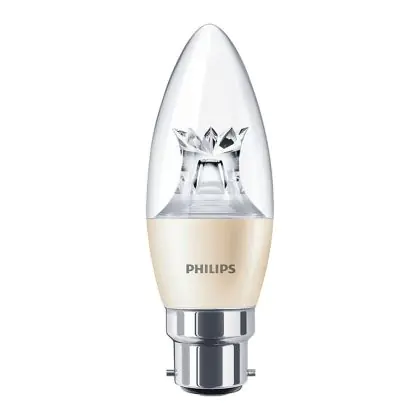Beschreibung Philips MASTER LED Kerze B22 Krone Klar 6W 470lm - 822-827 Dim To Warm | Dimmbar - Ersatz Für 60W